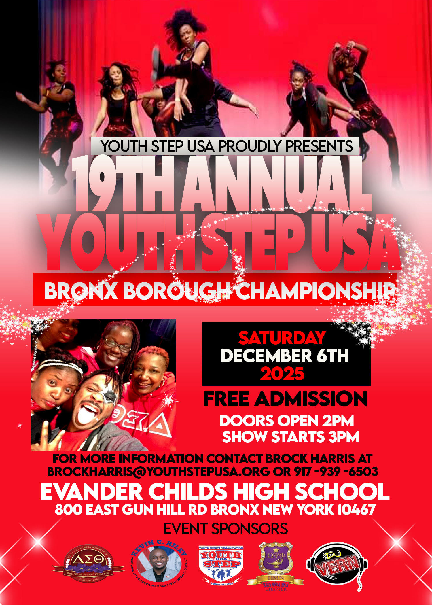It’s that time of the year again! The 19th Annual @youthstepusa Bronx Borough Championship is this Saturday! Come experience the energy, passion, and talent as teams compete for the chip. Don’t miss this celebration of youth excellence and community spirit!