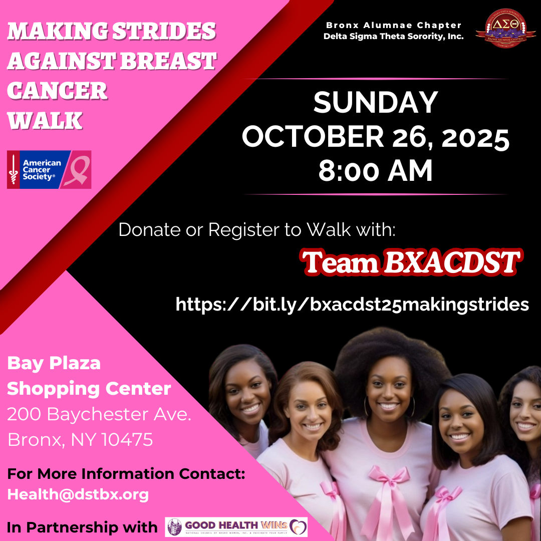 The Bronx Alumnae Chapter of Delta Sigma Theta Sorority, Inc. is proud to support the Making Strides Against Breast Cancer Walk!